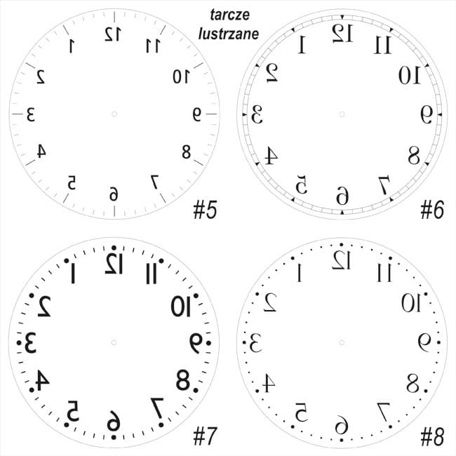 Na załączonych zestawieniach tarcz znajdziesz proponowane układy cyfr na tarczy.