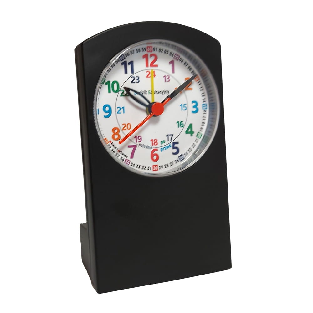 Polecamy kwarcowy budzik edukacyjny służący do nauki odczytu czasu.