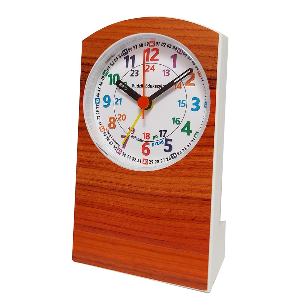 Polecamy kwarcowy budzik edukacyjny służący do nauki odczytu czasu.