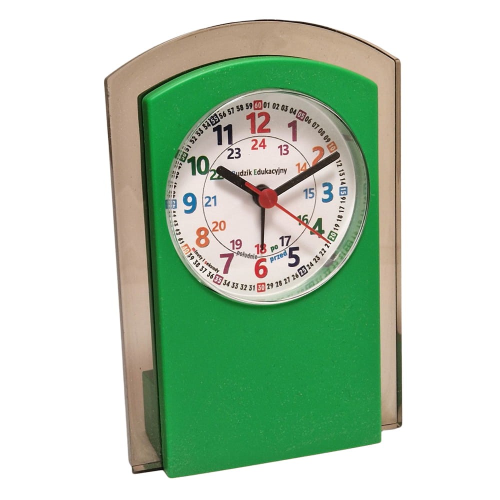 Budzik posiada specjalną tarczę do nauki odczytywania czasu.