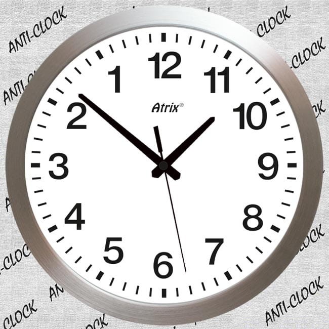 Polecamy duży aluminiowy zegar kwarcowy chodzący wspak.