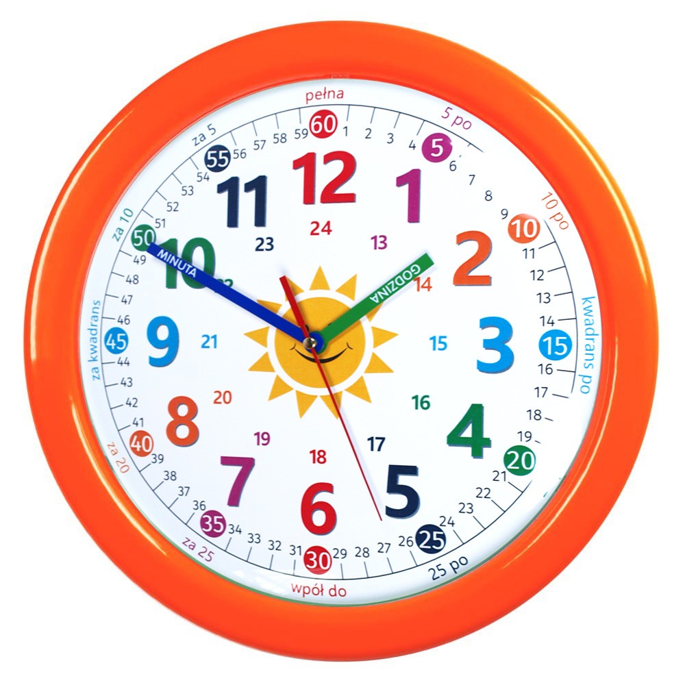 Duży zegar do nauki odczytu czasu pomarańcz/ 32,5cm