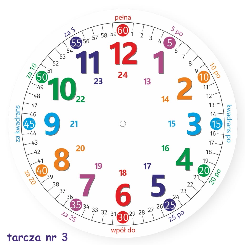 | wskazówki | oznakowane kolorowe wskazówki |