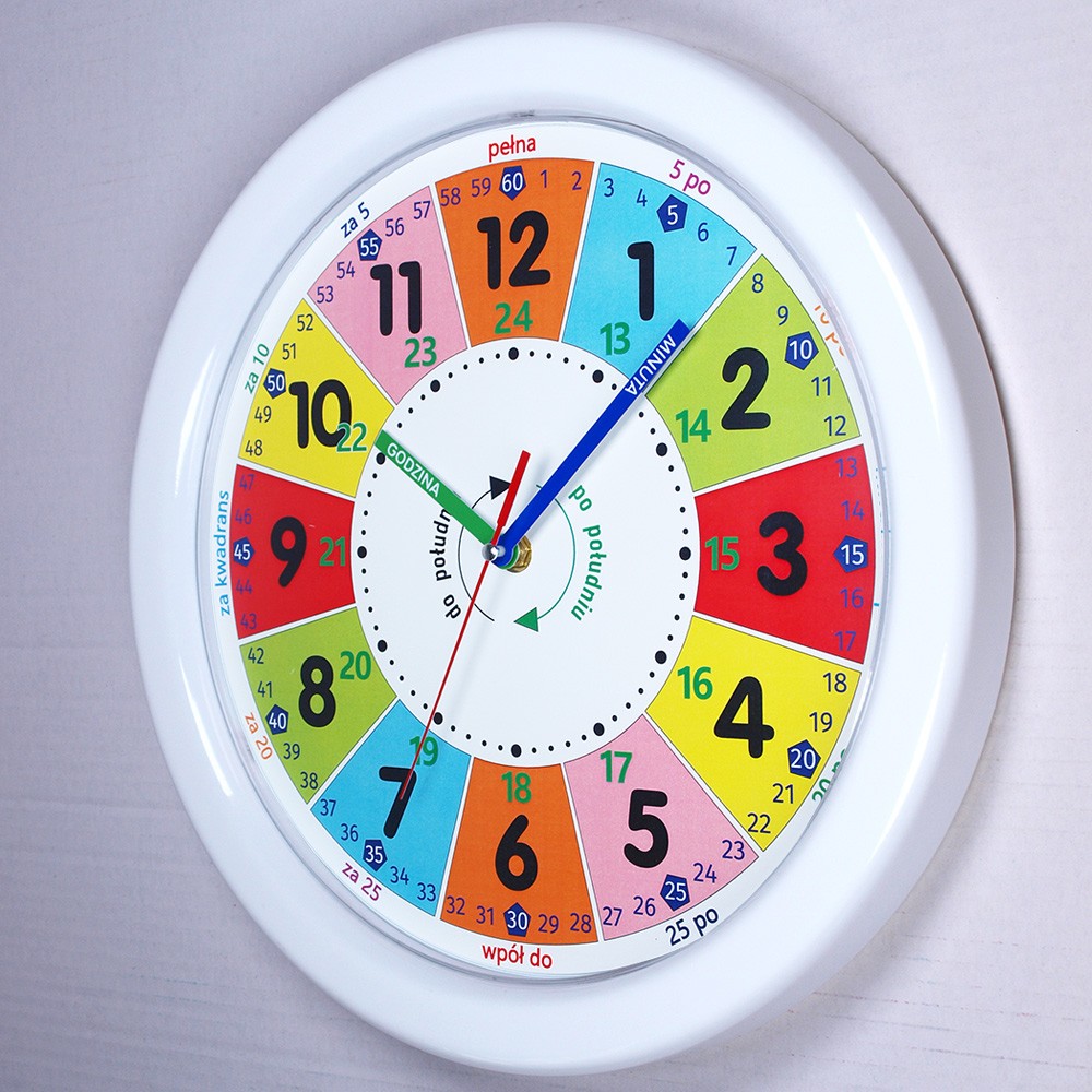 Duży zegar edukacyjny nauka odczytu czasu biały/ 32,5cm