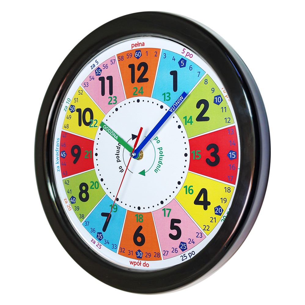 Duży zegar edukacyjny nauka odczytu czasu czarny/ 32,5cm