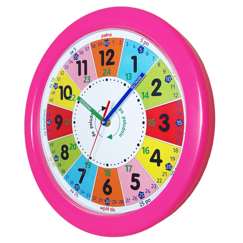 Duży zegar edukacyjny nauka odczytu czasu różowy/ 32,5cm