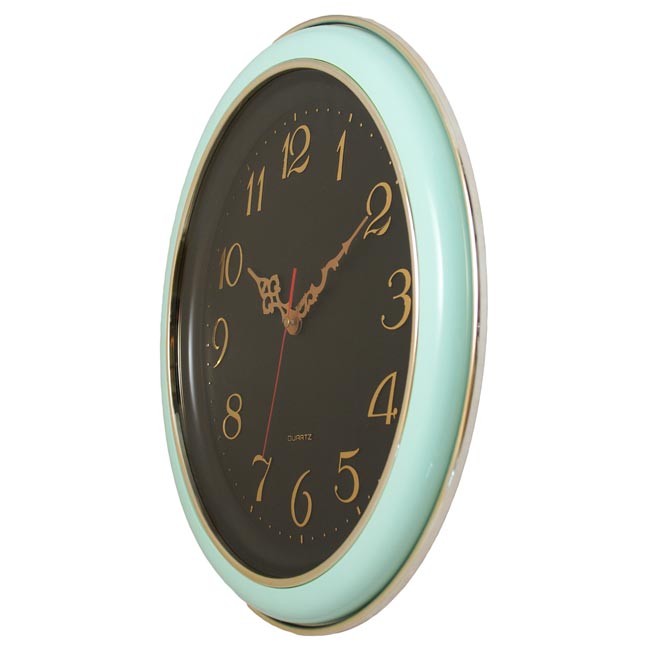 Pierwszą cechą wyróżniającą zegar jest półokrągła ramka z połyskiem.