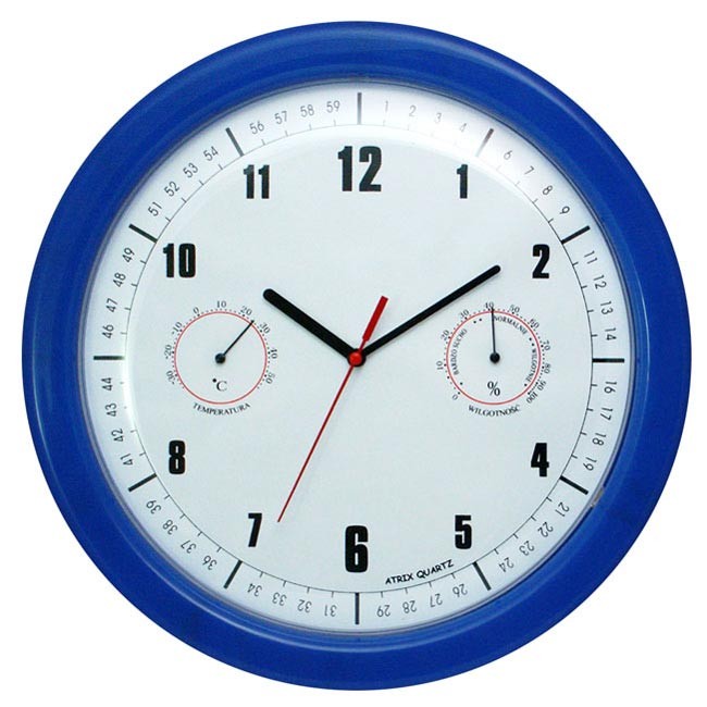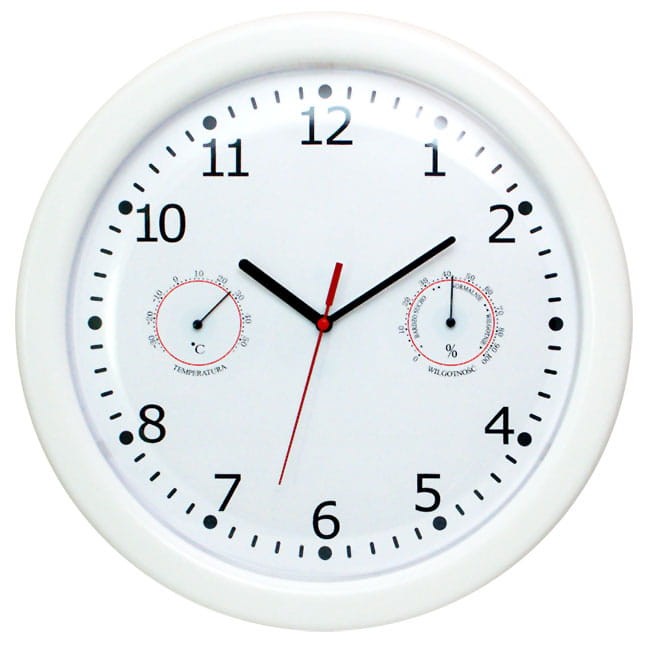 Polecamy duży zegar z termometrem i wilgotnościomierzem.