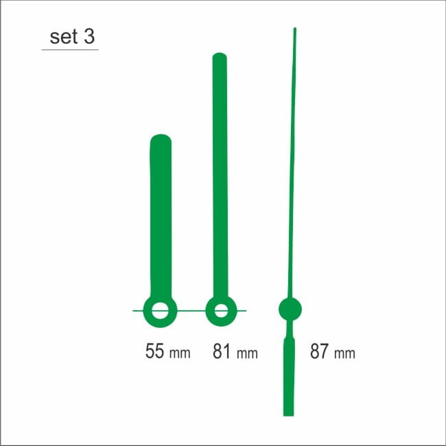 Komplet aluminiowych wskazówek w kolorze zielonym.