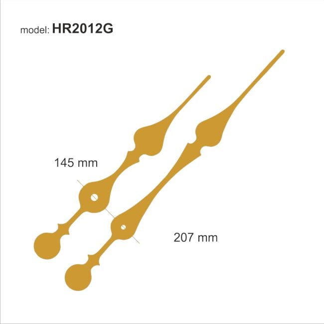 Komplet długich wskazówek zegarowych w kolorze złotym.