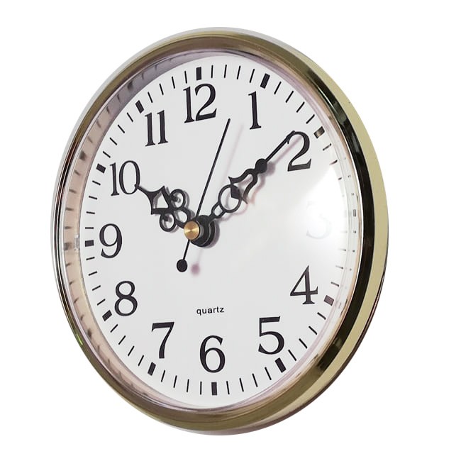 Wkładka zegarowa o plastikowej obudowie w kolorze złotym.