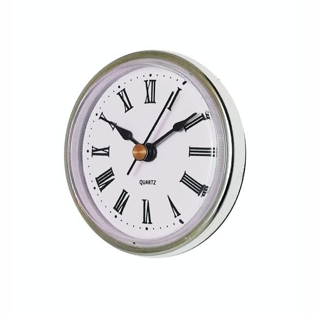 Wkładka zegarowa o plastikowej obudowie w kolorze srebrnym.