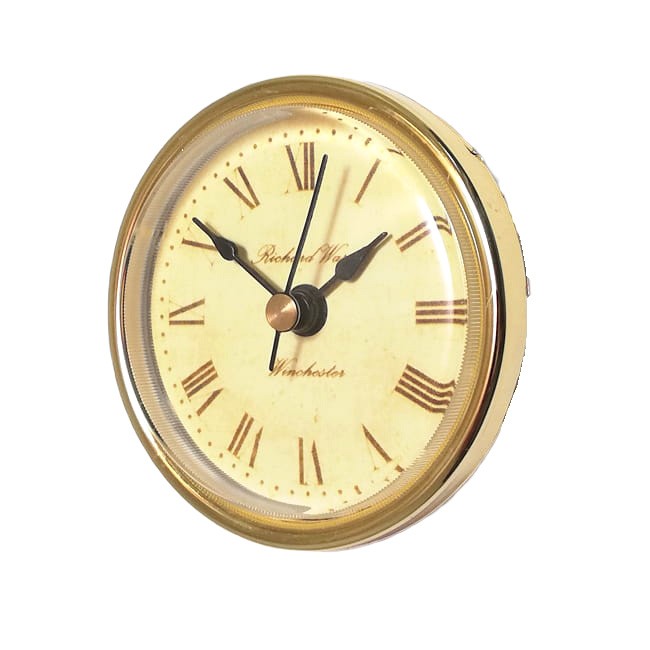 Wkładka zegarowa o plastikowej obudowie w kolorze złotym.