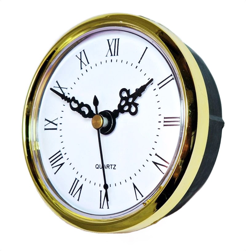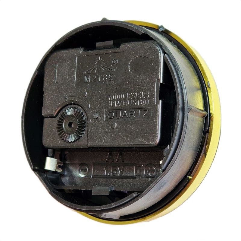 Wkładka zegarowa o plastikowej obudowie w kolorze złotym.