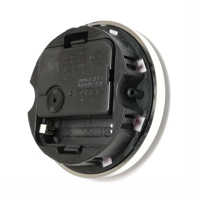 Wkładka zegarowa o plastikowej obudowie w kolorze srebrnym.