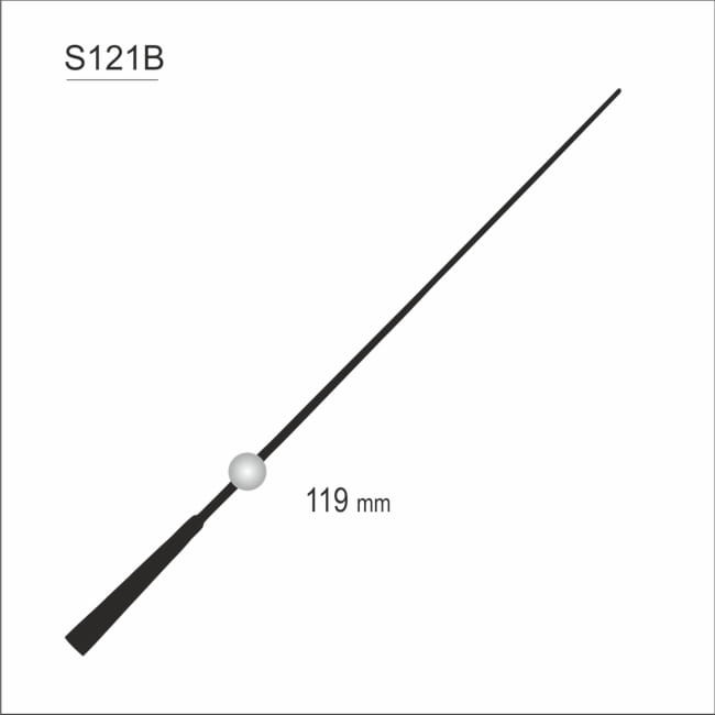 Bardzo długa aluminiowa wskazówka sekundnika w kolorze czarnym.