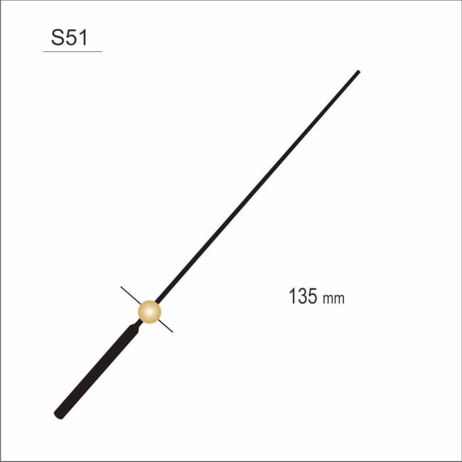 Bardzo długa aluminiowa wskazówka sekundnika w kolorze czarnym.
