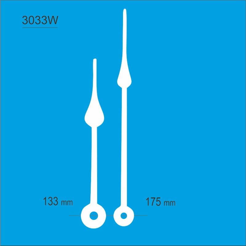 Komplet bardzo długich wskazówek w kolorze białym.
