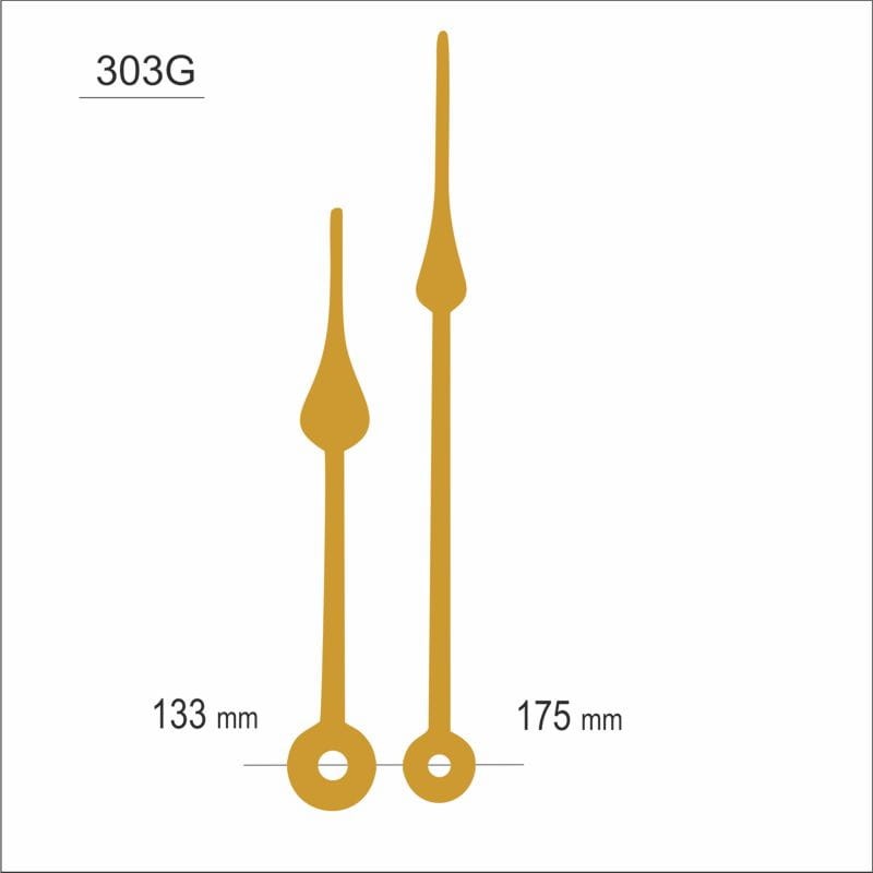 Komplet bardzo długich wskazówek w kolorze złotym.