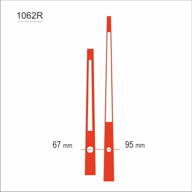 Komplet dużych aluminiowych wskazówek w kolorze czerwonym.