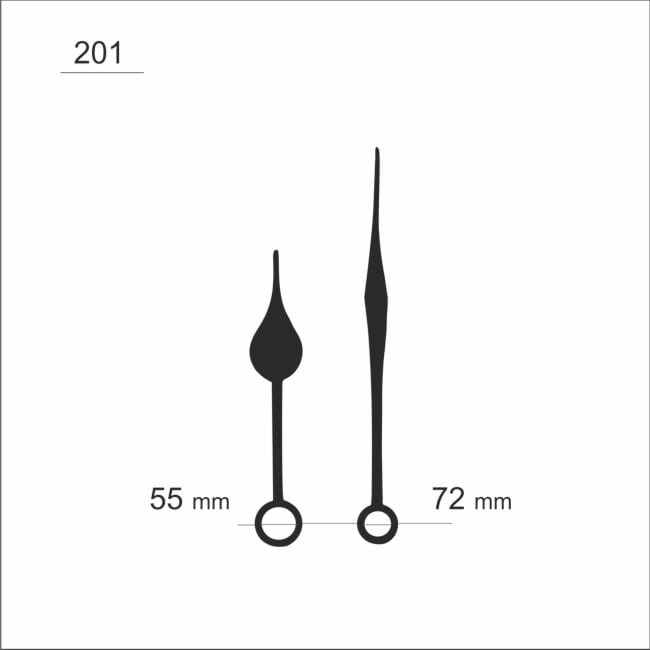 Komplet wskazówek zegarowych w kolorze czarnym.