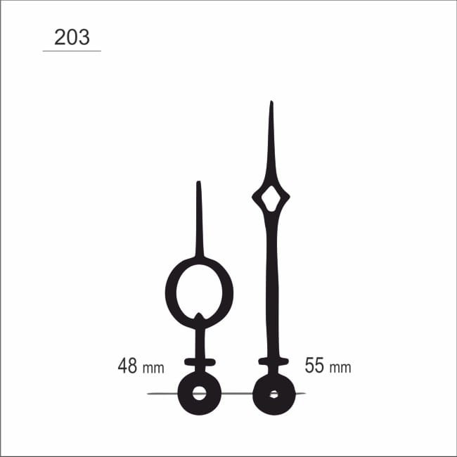 Komplet wskazówek zegarowych w kolorze czarnym.
