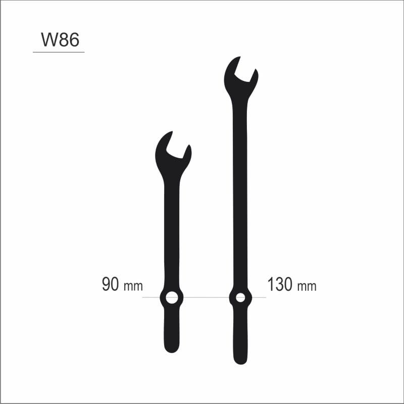 Komplet wskazówek o kształcie kluczy dla mechanika w kolorze czarnym.