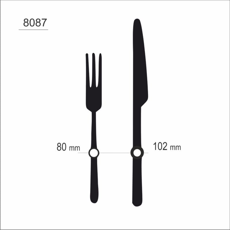 Komplet wskazówek o kształcie noża i widelca w kolorze czarnym.