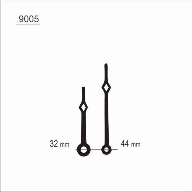 Komplet wskazówek zegarowych w kolorze czarnym.