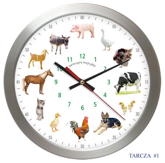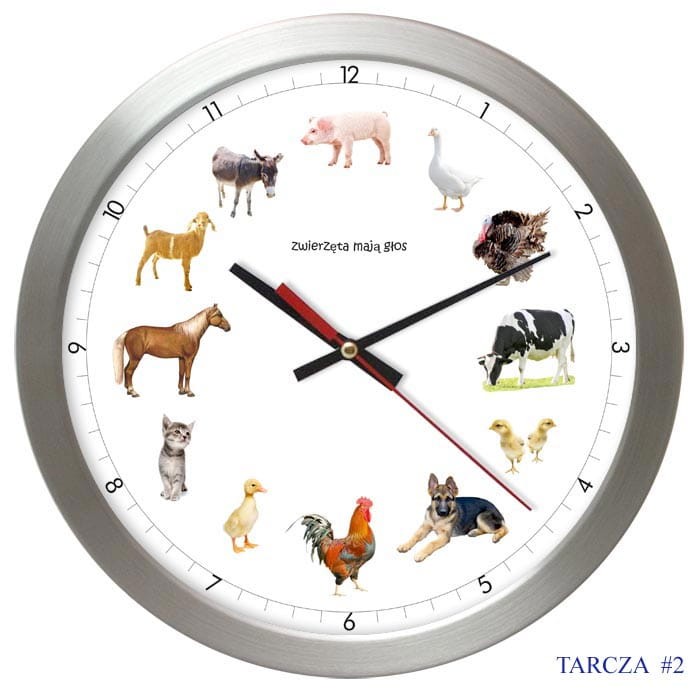 Polecamy zegar ścienny z głosami dwunastu zwierząt.