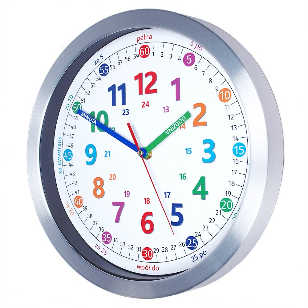 Zegar aluminium do nauki odczytu czasu PL /30 cm