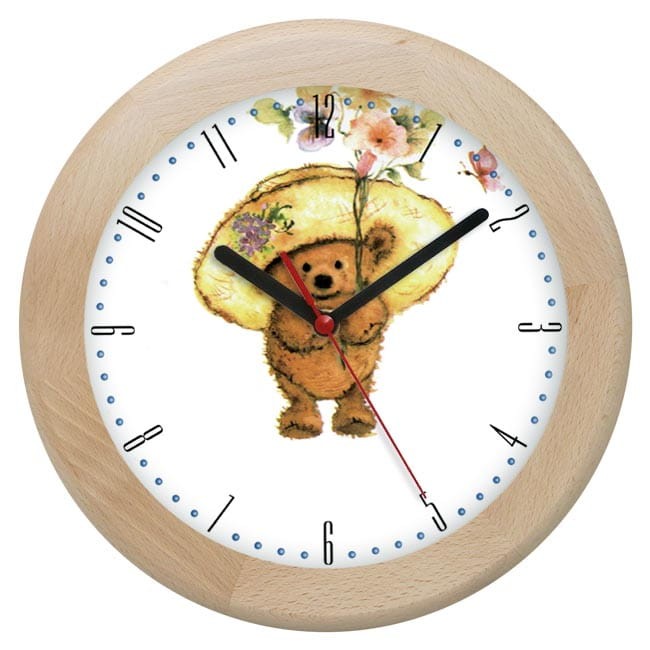 Obudowa zegara wykonana jest z naturalnego drewna.