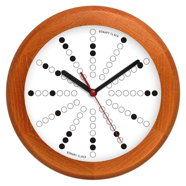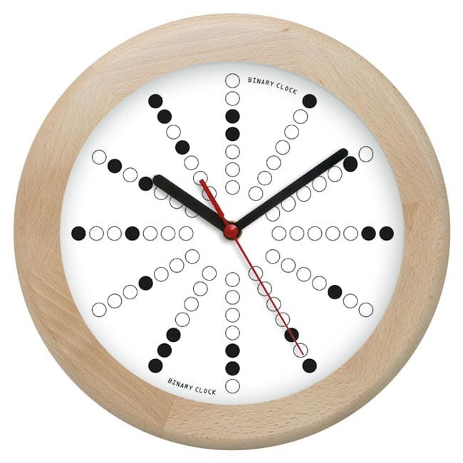Polecamy zegar ze specjalną tarczą, gdzie godziny zapisane są w systemie binarnym.