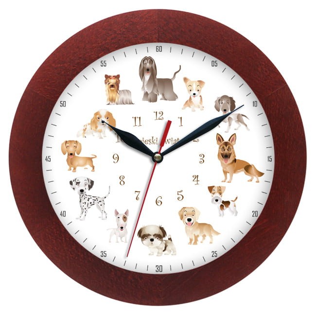 Zegar drewniany solid pieski świat #1
