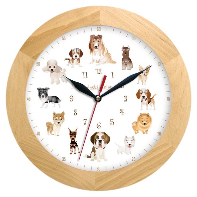 Zegar drewniany solid pieski świat #2
