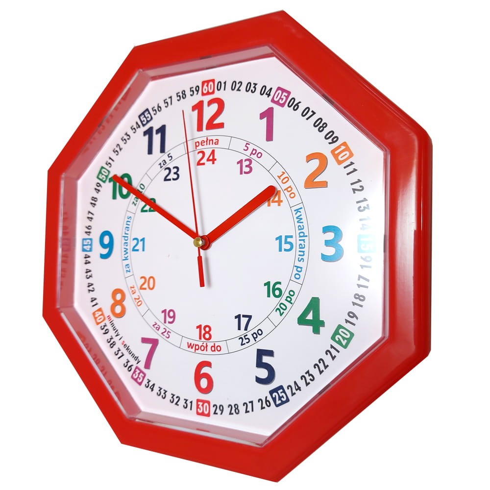 Zegar edukacyjny nauka czasu oktagon czerwony