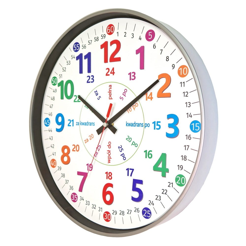 Zegar edukacyjny plastikowy srebrny 35cm