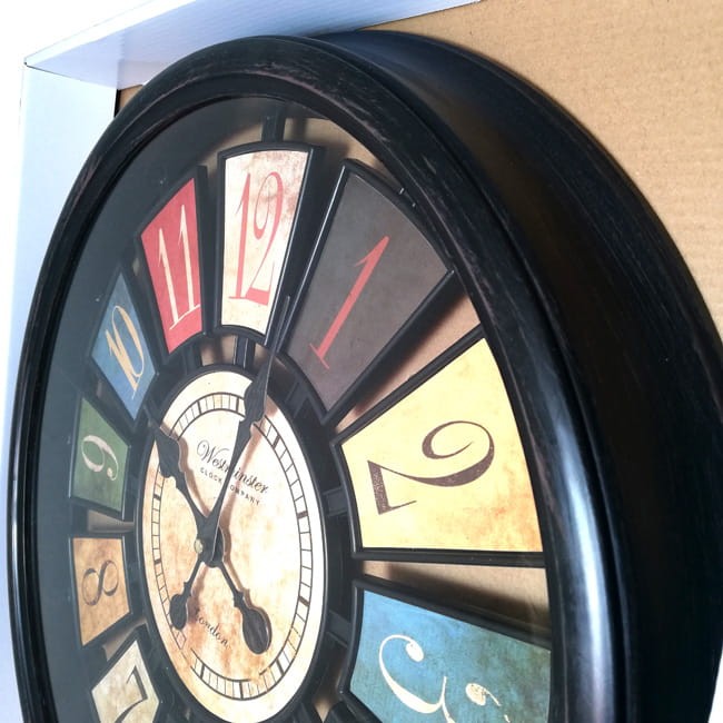 Polecamy gigantycznych rozmiarów kwarcowy zegar ścienny w stylu vintage.