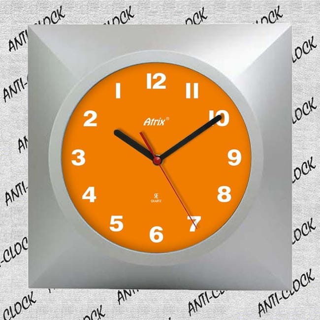 Polecamy kwadratowy zegar kwarcowy chodzący wspak.