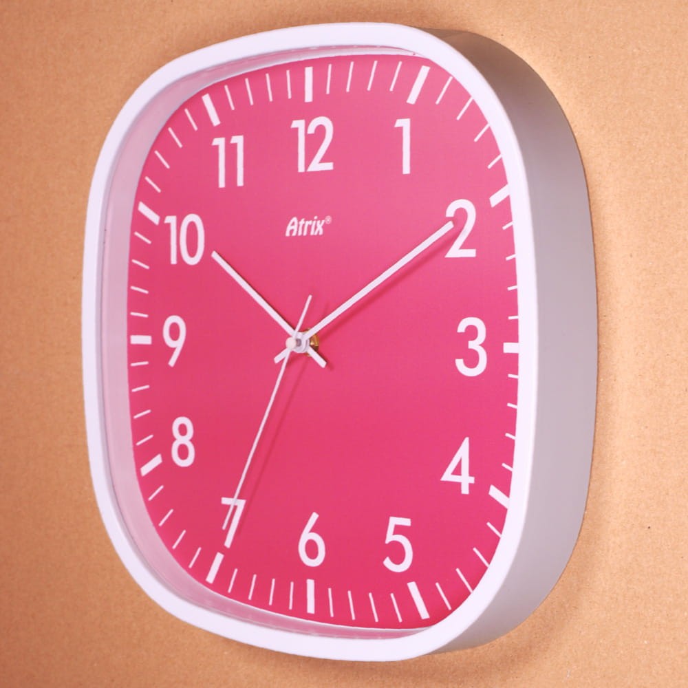 Zegar posiada kwadratową plastikową ramkę w kolorze białym (z połyskiem).