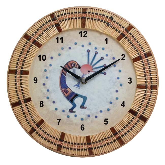 Ramka zegara wykonana jest ze splecionych naturalnych patyczków.