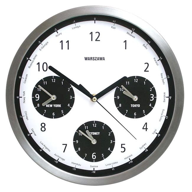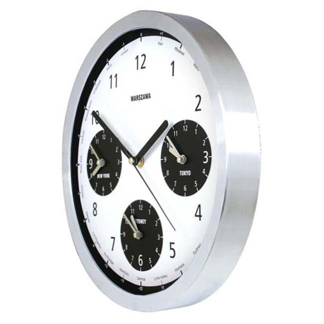 Polecamy zegar ścienny wskazujący cztery czasy.