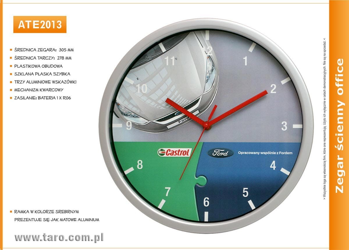 Polecamy plastikowy zegar naścienny ze srebrną ramką.