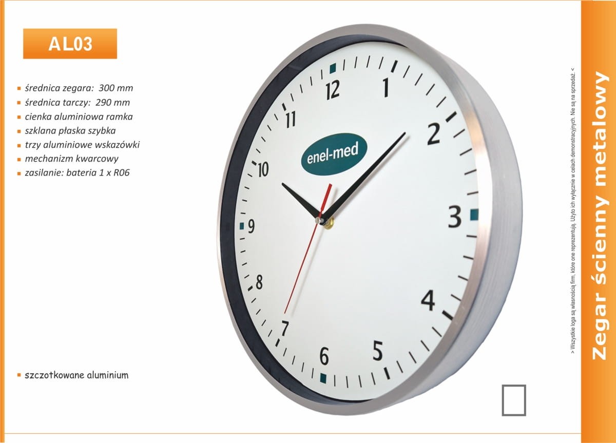 Zegar reklamowy aluminiowy slim/300mm