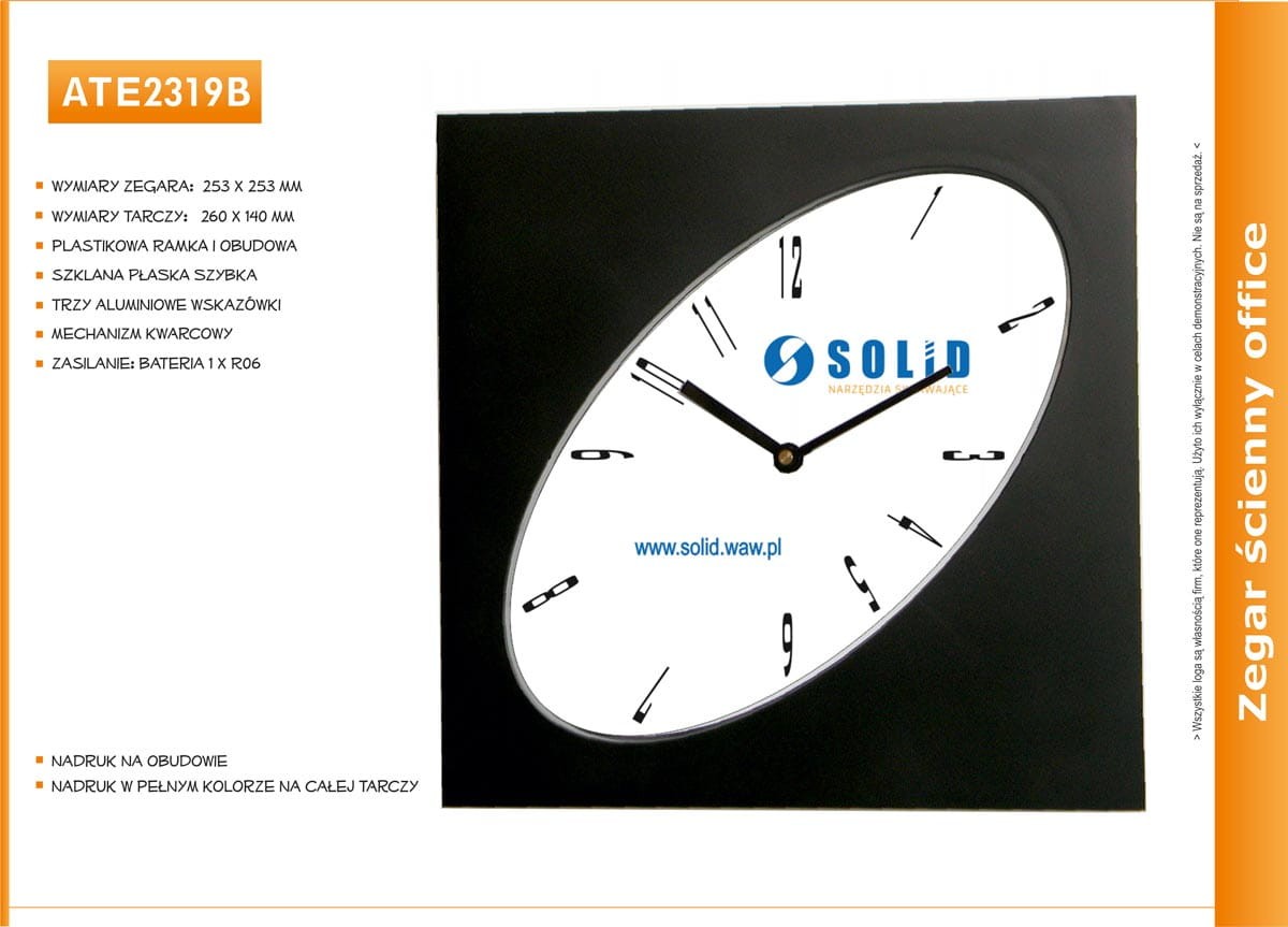 * wymiary zegara: 253 x 253 mm