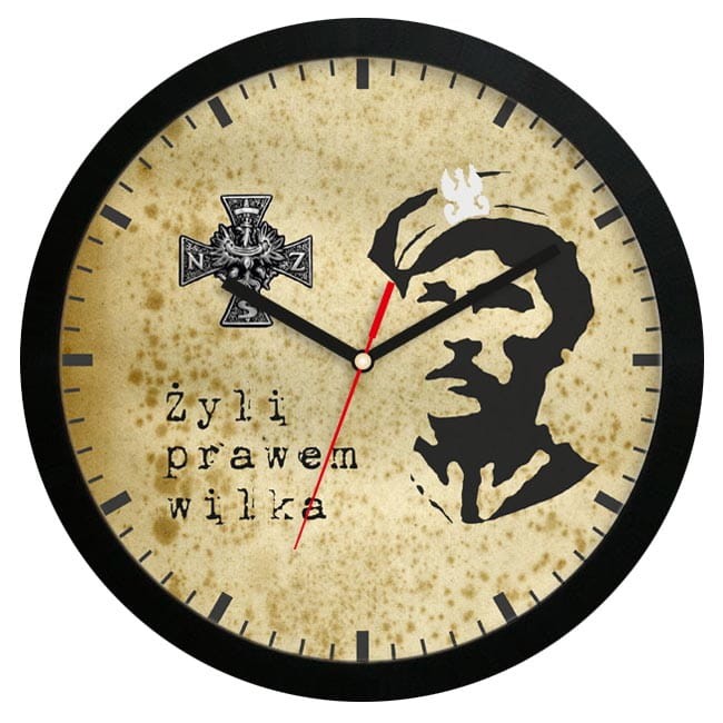 Polecamy zegar naścienny z tarczą na cześć Żołnierzy Wyklętych.