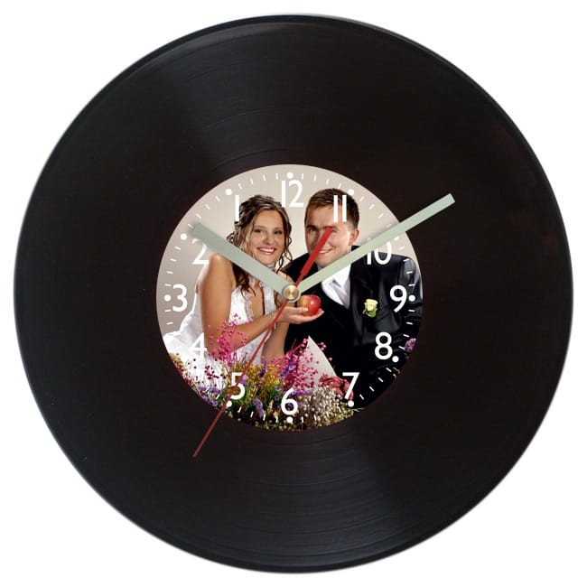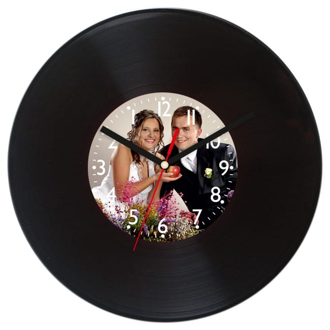 Załączone zdjęcie przedstawia przykładowy zegar wykonany na pamiątkę ślubu