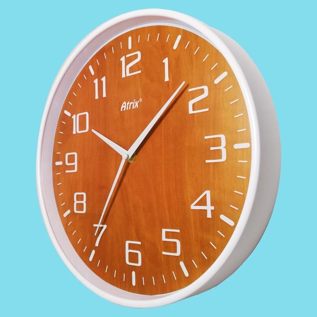 Posiada oryginalną drewnopodobną tarczę z białymi arabskimi cyframi.