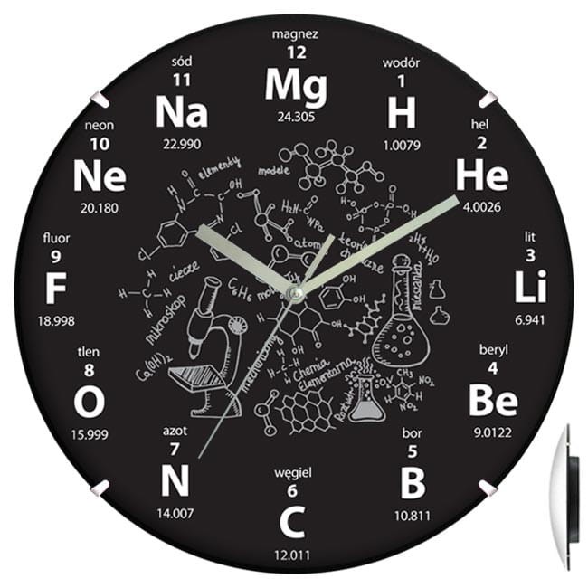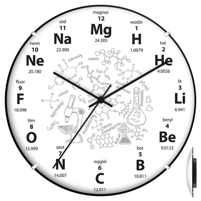 za pomocą dwunastu pierwszych pierwiastków z tablicy Mendelejewa.