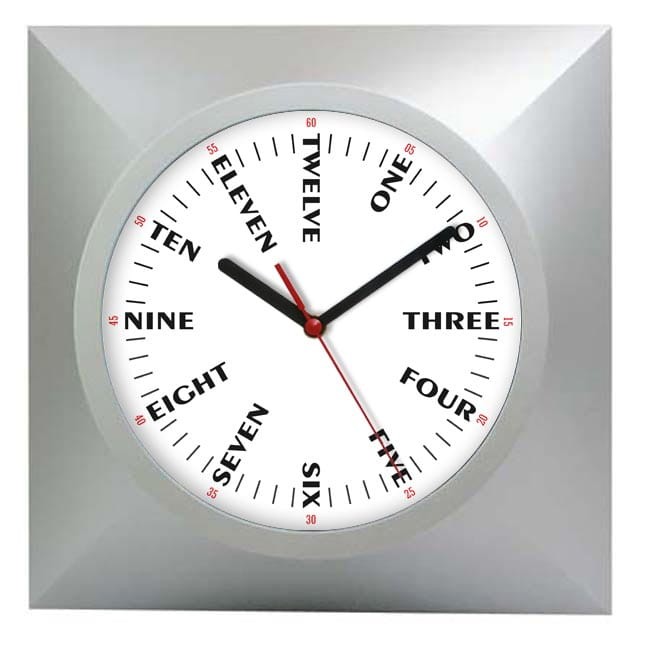 Zegar posiada oryginalną tarczę z angielskimi opisami godzin.